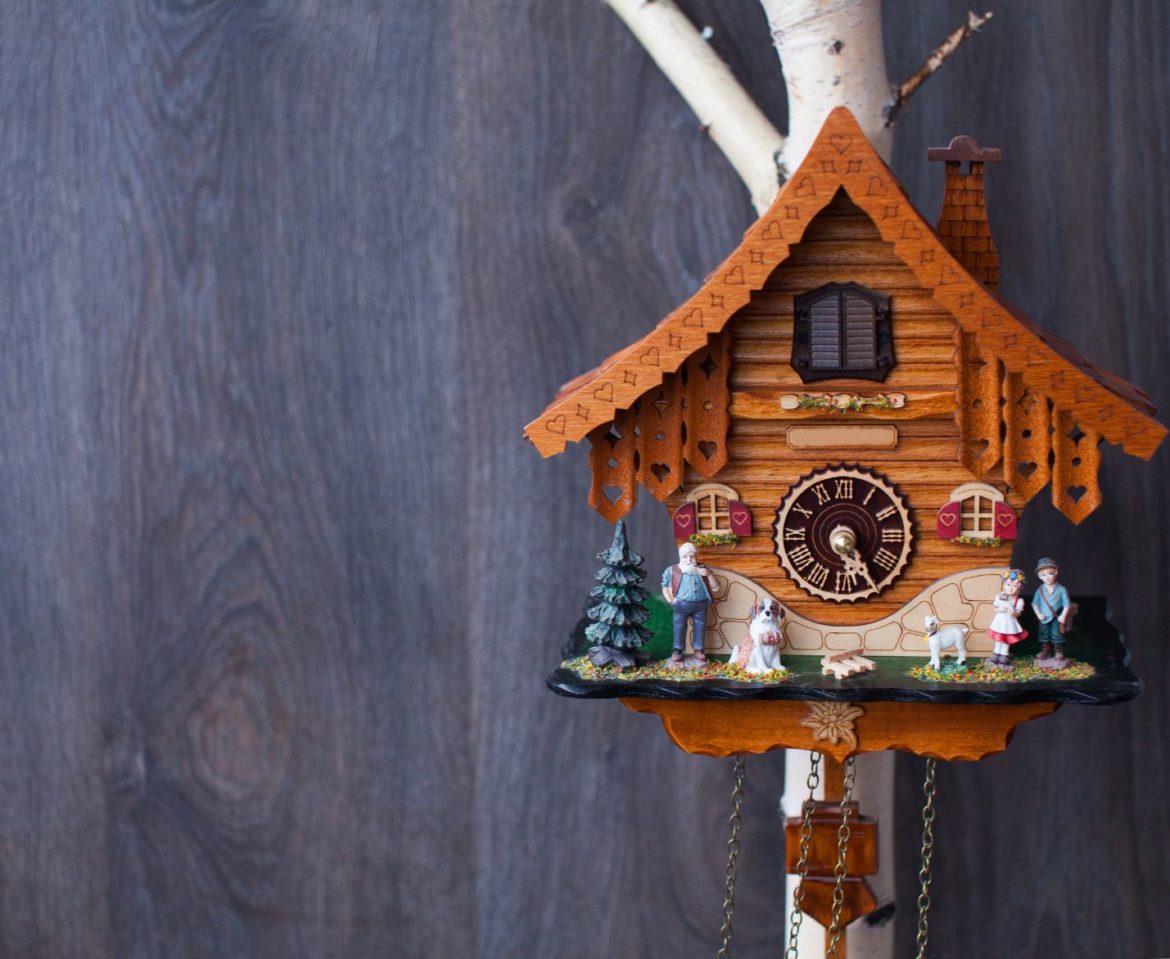 Inside lived the ruins of an antique cuckoo clock that belonged to my grandmother who had passed the year before. What at one time had been a rich, dark wood clock with delicate birds and leaves carved on the sides, now resided in faded pieces in a sad moving box. In its prime, it hung in the den in my grandmother’s home where the sound of the suspended pinecones gently knocked together at the bottom marking the hours ticking by.
