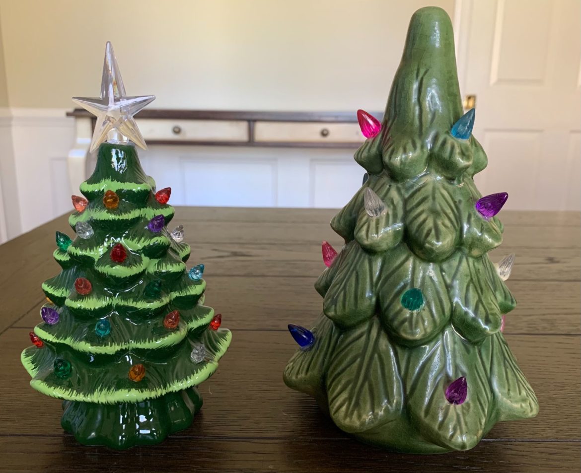 Pulling out all the bubble wrapped ornaments and decorations, I see my favorite pieces snuggly tucked in the furthest corner of the box. Two ceramic Christmas trees, one vintage and one newer, peeking out from the newspaper and bubble wrap combo that ensured its safe arrival into the next season.